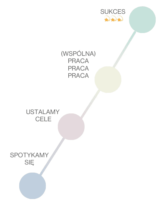 Będę śledzić Twoje postępy i dostarczać szczerej opinii zwrotnej. Zarówno celebracja sukcesów, jak i radzenie sobie z przeszkodami, będą istotną częścią naszej współpracy.